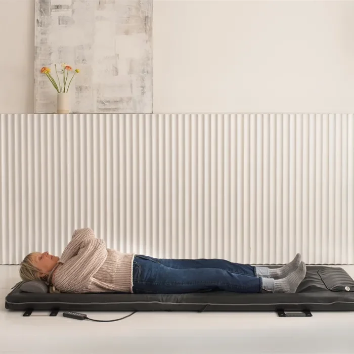 The Mobiliser by Back in Action is a medically-engineered treatment mat designed to gently mobilise the spine and nervous system. At first glance, it looks like a slim, padded mat—but within it lies a sophisticated system of motorised rollers that glide up and down the length of your back. As you lie comfortably on the Mobiliser, these rollers apply rhythmic, wave-like pressure along your spine, encouraging natural movement and alignment.
